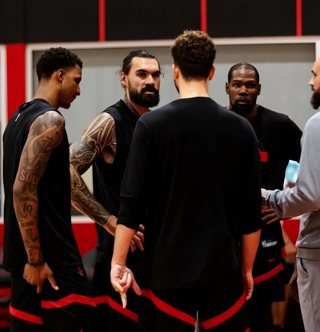 火箭队外线有不少高大的三分射手,像是超级前锋杜兰特,还有火箭队的小贾巴里·史密斯,以及即将复出的伊森,甚至申京本赛季的三分投篮能力都不弱。有这么多的射手在,火箭队不需要亚当斯在外线去投三分,他只要在内线多抢前场篮板,镇守篮下就足够了。